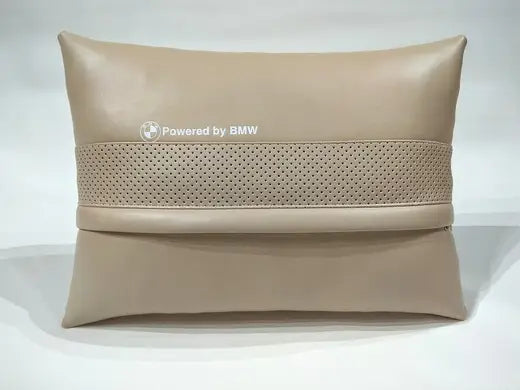 2pc Car Seat Lumbar Back Support Headrest Pillow Cushion Best Beige PU Leather BMW