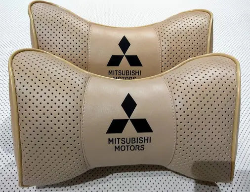 2pc Car Seat Headrest Neckrest Pillow Cushion Best Fashion Beige PU Leather Quality Mitsubishi
